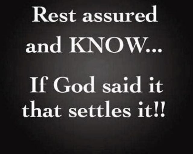 Greeetings All, let this nugget sink in today and live LIFE knowing it’s TRUE. I don’t care what it looks like; tell yourself GOD SAID IT. People doubting you; tell yourself GOD SAID IT. You doubting yourself; say what GOD SAID. They’re calling you crazy, that’s good, because GOD SAID IT and GOD WILL SHOW THEM so that settles IT!! ![]()